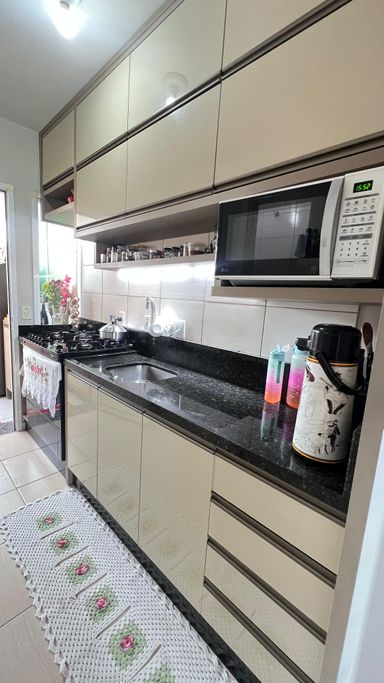 - 2 dormitórios - 2 banheiros - Cozinha - Sala de estar/jantar - 1 vaga - Área de serviço - Churrasqueira - Gradeado - Sacada - Semi mobiliado - Entrada individual