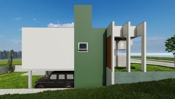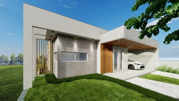 Casa com projeto moderno, linda fachada com garagem na entrada lateral.