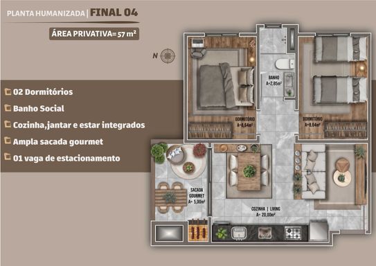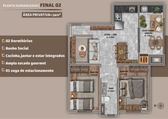 ✅ 02 dormitórios