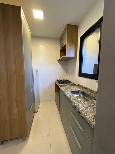 - 2 dormitórios - 2 banheiros - Cozinha - Sala de estar/jantar - 1 vaga - Área de serviço - Churrasqueira - Gradeado - Sacada - Semi mobiliado - Entrada individual
